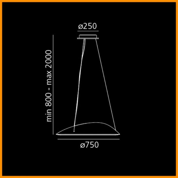 • Dimensioni: diametro 75 cm. - altezza min 80 cm. - altezza max dal soffitto 200 cm. - Rosone d. 25 cm
