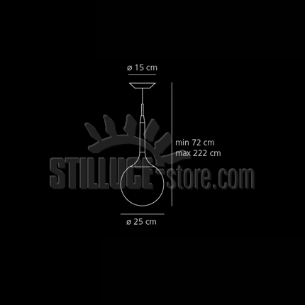 • Dimensioni: Diametro diffusore 25 cm - Altezza min 72 cm - Altezza max 222 cm.