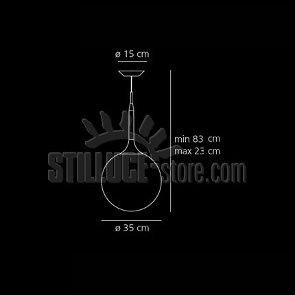 • Dimensioni: Diametro diffusore 35 cm - Altezza min 83 cm - Altezza max 233 cm
