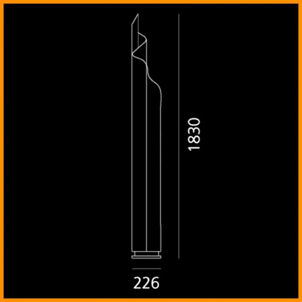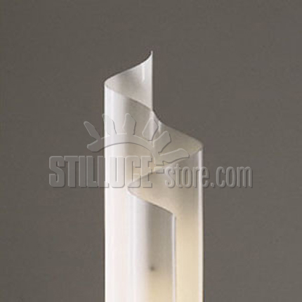 Artemide Chimera lampada da terra LED con diffusore in metacrilato opalino bianco curvato a caldo. Una storica lampada progettata da Vico Magistretti nel 1969 rimessa poi in produzione nel 1999 visto le innumerevoli richieste. Nel 2024 è stata modificata con la nuova tecnologia LED. Un enorme foglio di metacrilato tagliato e poi curvato a caldo avvolge la fonte luminosa.