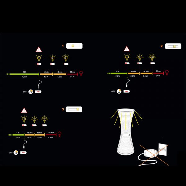 • Lampadina: LED INTEGRATO 3W 3000K 210lm CRI=90 ricaricabile USB