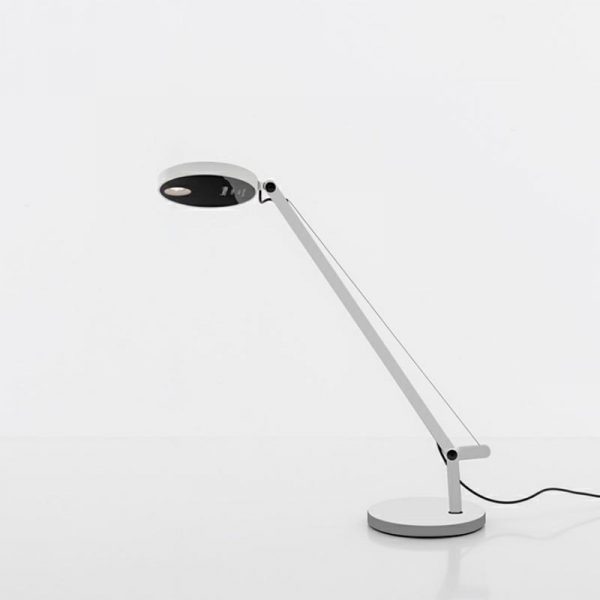 Artemide Demetra micro tavolo LED; Naoto Fukasawa designer. Materiali: testa e base in alluminio pressofuso, braccio in alluminio estruso, disponibile nel colore: grigio antracite, bianco e nero opaco. LED integrato total power 6W 257lm 3000K (luce bianca calda) o 6W 241lm. 2700K (luce + calda) CRI=90 con regolatore d’intensità luminosa – microswitch dimmer posto sulla testa dell’apparecchio. Demetra micro tavolo mantiene tutte le caratteristiche della versione tradizionale, massima flessibilità di direzionare la luce nello spazio, la potenza e il flusso della luce sono leggermente inferiori rispetto alla versione classica. Di minimo ingombro si adatta agli spazi più ridotti, perfetta sia nell’ambiente domestico che lavorativo.