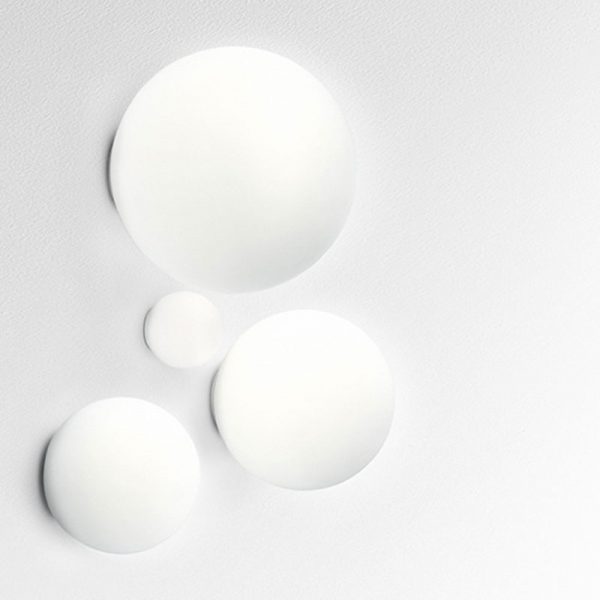 Artemide Dioscuri 42 lampada da parete o soffitto in vetro soffiato acidato bianco. Il grado di protezione IP65 la rende idonea all’utilizzo anche in esterno.