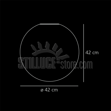 Artemide Dioscuri 42 lampada da parete o soffitto; Michele De Lucchi designer. Materiali: supporto parete o soffitto in resina termoplastica con diffusore in vetro soffiato acidato nel colore bianco. Lampadina max 1 x 150W alogena eco E27 o LED esclusa. Una sfera in vetro pulita e semplice, disponibile anche in dimensioni più piccole e nella versione da tavolo. Il grado di protezione IP65 la rende idonea all’utilizzo anche in esterno. Codice prodotto: 0117010A