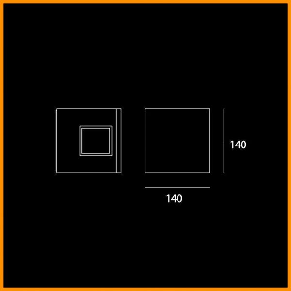 Artemide Effetto 14 Quadro lampada da parete IP65 con 2 fasci di luce larghi. Sorgente LED inclusa con temperatura di colore 3000K (calda), lenti diffondenti in PMMA siliconate a raso calotta, che ottimizzano il rendimento ottico del fascio e ne determinano l’ampiezza 50° per creare geometrie di luce ad effetto scenografico.