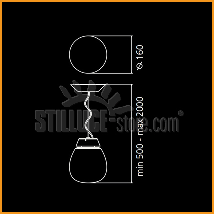 • Dimensioni: vetro Ø 16 cm. H. 50 cm H. max 200 cm