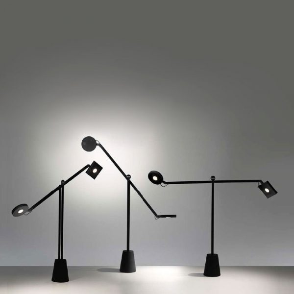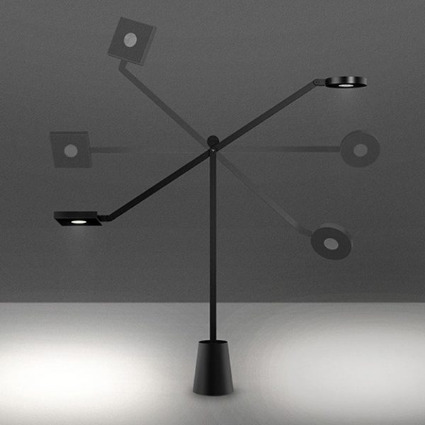 CAArtemide Equilibrist lampada a LED da tavolo con luce asimmetrica; Jean Nouvel designer. Materiale: alluminio con contrappeso in acciaio, colore nero. Una bilancia con due lampade in cerca di equilibrio, due lampade in rotazione che ruotano attorno ad un asse verticale, orientabili sia rispetto all’asse orizzontale che a quello verticale. Due forme diverse per la diffusione della luce, una testa tonda e una quadrata. Led total power 12W – 3000K ( 240lm testa tonda, 380lm testa quadrata) inclusi. Regolatore di luminosità e accensione separata dei switch dimmer. Una lampada pulita ed essenziale per arredare con gusto e design i vostri spazi. Codice prodotto: 1442010A