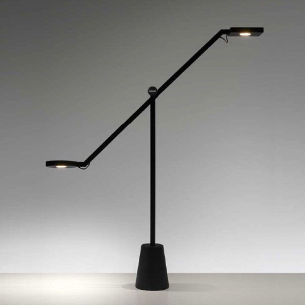 Artemide Equilibrist originale lampada a LED nel colore nero, una bilancia con due lampade in cerca di equilibrio che ruotano attorno ad un asse sia verticale che orizzontale.