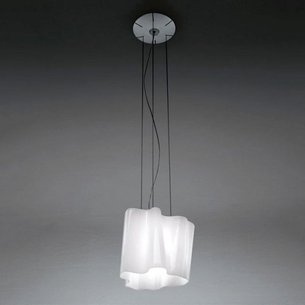 Artemide Logico lampada a sospensione mini, vetro bianco soffiato effetto seta lucido. Attacco lampadina E27 per alogena eco o lampadina led.