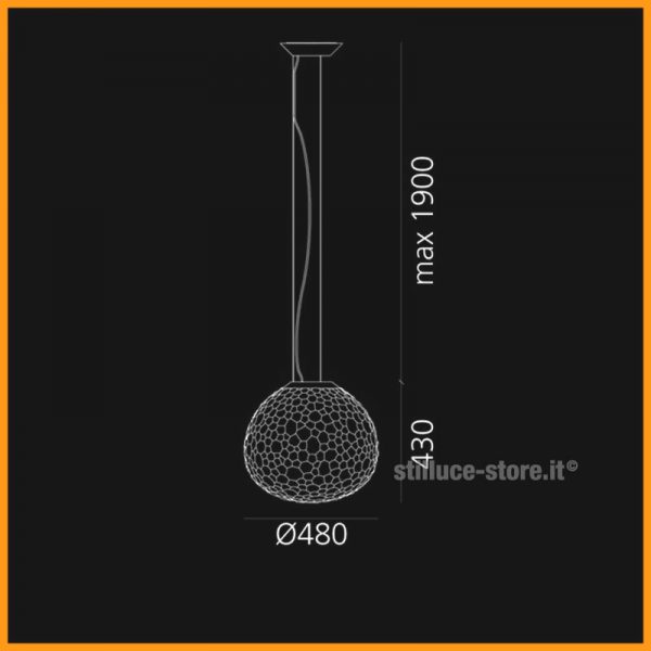 Artemide Meteorite 48 lampada a sospensione di Pio e Tito Toso designer. Struttura in metallo con diffusore realizzato in vetro artistico a doppio strato ottenuto con la tecnica artigianale della soffiatura in stampo a fermo e conseguente molatura che permette di ottenere interessantissimi effetti di profondità luminose nella lampada illuminata. La lampada a sospensione si colloca piacevolmente in qualsiasi ambiente domestico, disponibile anche il modello a plafoniera, da tavolo e da terra. Codice prodotto 1713010A