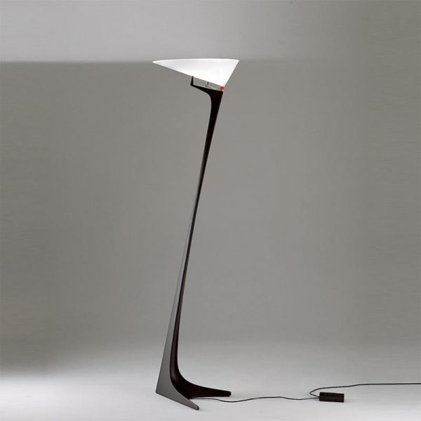 Artemide Montjuic lampada da terra; Santiago Calatrava designer. Materiali: metacrilato e tecnopolimero. Colori: nero (struttura) e bianco (diffusore). Lampadina alogena eco R7s 230W o lampadina LED 1 X 11W dimmerabile – esclusa. Codice prodotto: A014400