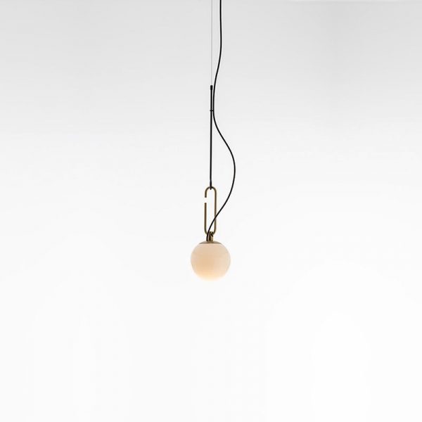 Artemide NH 14 lampada a sospensione; design Neri&HU. Materiali: diffusore in vetro soffiato bianco d. 14 cm, corpo ottone spazzolato, struttura colore nero. Lampadine: n. 1 LED DIM 5W E14 (esclusa). Una reinterpretazione della cultura orientale che richiama l’uso delle lanterne per creare infiniti paesaggi idi luce ed illuminare diversi contesti. Codice prodotto: 1280010A