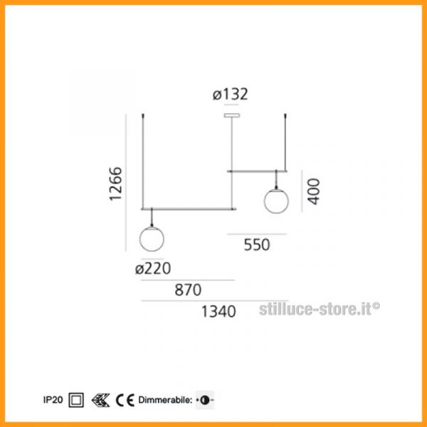 Artemide NH S3 2 Arms lampada a sospensione; design Neri&HU. Materiali: diffusori in vetro soffiato bianco, corpo ottone spazzolato, struttura colore nero. Lampadine: n. 2 LED DIM 15W E27 (escluse). Una reinterpretazione della cultura orientale che richiama l’uso delle lanterne per creare infiniti paesaggi idi luce ed illuminare diversi contesti. Elemento centrale sono le sfere in vetro bianco soffiato in due diversi diametri e l’anello in ottone spazzolato, si evolve in strutture che la sostengono per portare la luce nello spazio, le sfere scorrendo sul braccio possono essere posizionate nel punto desiderato . Codice prodotto: 1282010A