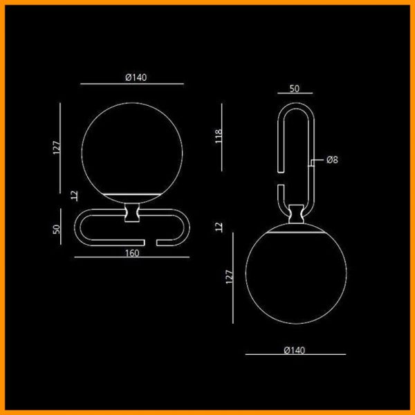 • Dimensioni: Lunghezza cm 16 cm. - sfera diametro 14 cm.