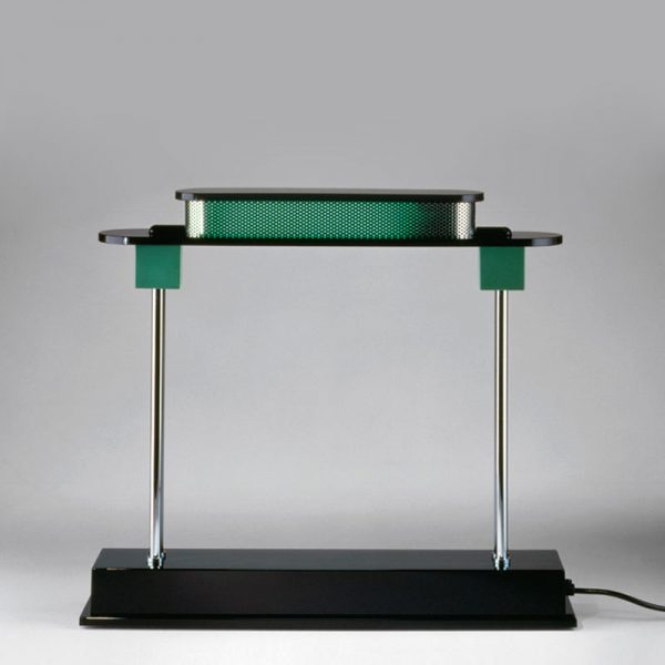 Artemide Pausania lampada da tavolo LED di Ettore Sottsass designer. Materiali: corpo e in resina nera, diffusore in metacrilato verde, aste in alluminio. Riedizione della celebre lampada ministeriale di Ettore Sottsass, nella nuova versione LED Total power 10W a luce variabile (2700-6500K). Regolatore d’intensità luminosa – microswitch dimmer. Codice prodotto 1081010A.
