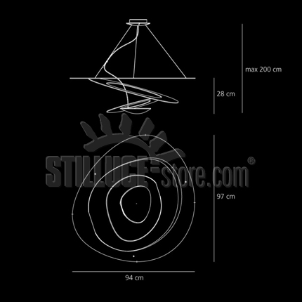 Artemide Pirce Sospensione Led Oro; Giuseppe Maurizio Scutellà designer. Lampada a sospensione in alluminio. Da un disco sottile si aprono volute fluttuanti, che ricadono morbidamente verso il basso, creando magici effetti di forma e luce. Colore oro (gold) LED 44W warm white 3000K, 3313lm. incluso. Codice prodotto: 1254120A
