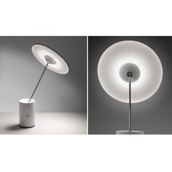 Artemide Sisifo lampada da tavolo a led con diffusore orientabile piatto inclinabile in tutte le direzioni, luce LED calda e rilassante, si accende / spegne e regola la luce al tocco.