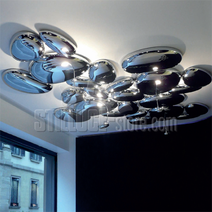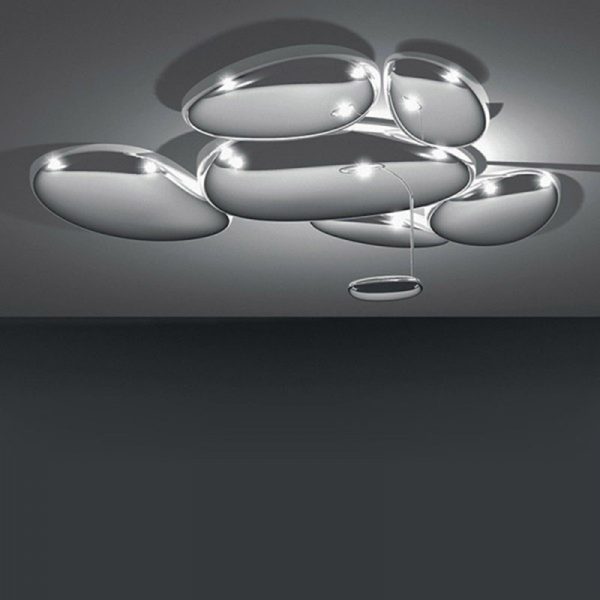 Artemide Skydro lampada a soffitto LED composta da ciottoli cromati; la luce rimbalza sui ciottoli, formando un effetto cielo luminoso. Di grande effetto! Disponibile anche nel modello 2700K (luce + calda), a richiesta.