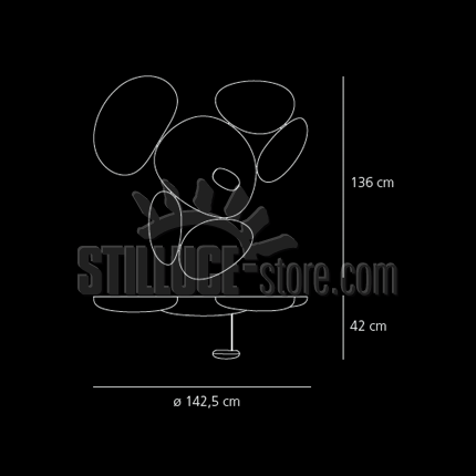 • Dimensioni: 142,5 X 130 cm. - altezza totale compreso corpo illuminante cm. 42