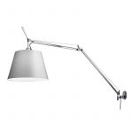 Artemide Tolomeo Mega Dimmer parete con diffusore raso d. 32 cm; Michele De Lucchi Giancarlo Fassina designer. Bracci mobili in alluminio lucidato con un sistema di equilibratura a molle; diffusore in raso di seta supportato da materiale plastico, orientabile in tutte le direzioni; supporto parete in alluminio brillantato. Lampadina: E27 alogena eco max 150W o lampadina LED 21W dimm. (esclusa). Colori: struttura in alluminio lucido con diffusore raso di seta. Codice prodotto: 0778010A+0781010A+0563050