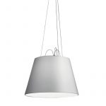 Artemide Tolomeo Mega Lampada a sospensione con diffusore d. 52 cm; Michele De Lucchi e Giancarlo Fassina designer. Composto da una struttura in alluminio e diffusore in raso di seta d. 52 cm. Lampadina alogena eco o led attacco E27 esclusa. Disponibile anche con diffusore in pergamena o nero.