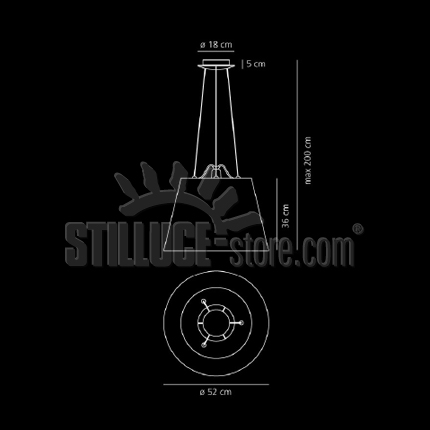 Artemide Tolomeo Mega Lampada a sospensione con diffusore d. 52; Michele De Lucchi e Giancarlo Fassina designer. Materiali: struttura nera con diffusore in tessuto nero. Lampadina alogena eco o LED attacco E27 esclusa. Codice prodotto: 0782030A + 0772040A.