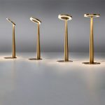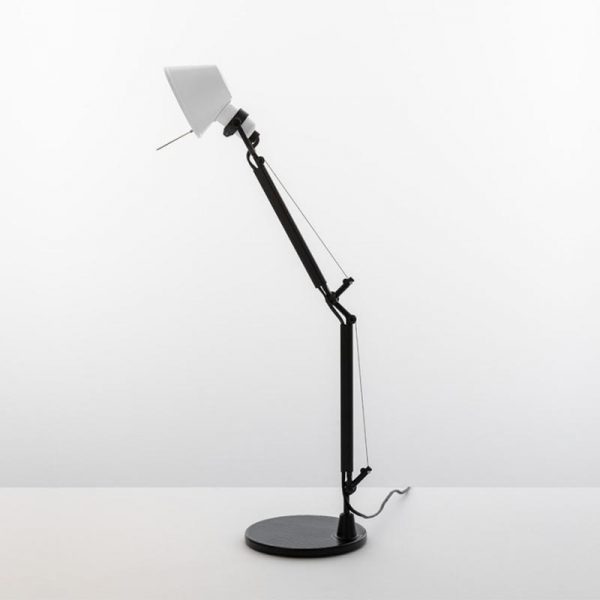 Artemide Tolomeo Micro tavolo bicolor; Michele de Lucchi e Giancarlo Fassina designer. Diffusore orientabile in alluminio anodizzato nel colore bianco, blu, giallo e rosso a seconda del modello, bracci mobili e base da tavolo nel colore nero. Utilizza n. 1 lampadina alogena eco o lampadina led attacco E14 – esclusa. Leggera e robusta viene riproposta in nuovi vivaci colori, adatta ad illuminare la scrivania, perfetta posizionata sul comodino per leggere a letto.