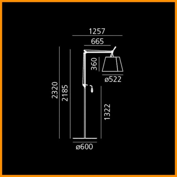 • Dimensioni: Larghezza 125,7 cm. - altezza 218,5 cm. - diametro base 60 cm. - estensione max in altezza 232 cm