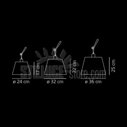 • Lampadina: diffusore d.24 cm. LED E27 max 17W - diffusore d. 32 e 36 cm. LED max 21W - escluse