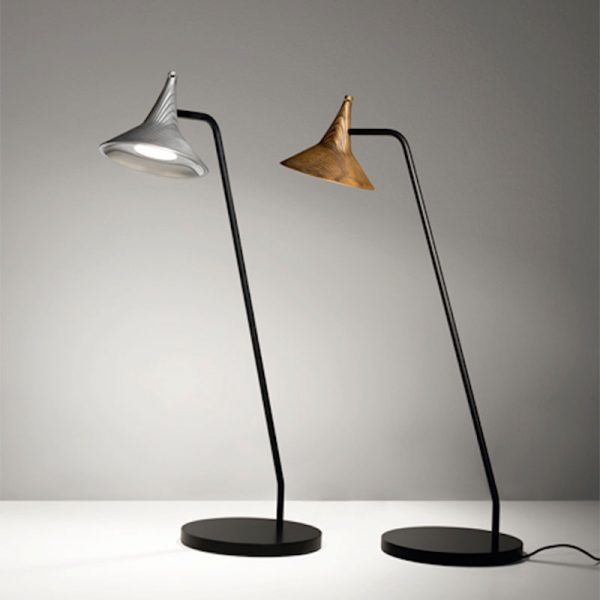Artemide Unterlinden nuova lampada da tavolo a LED nel colore alluminio o ottone anticato.