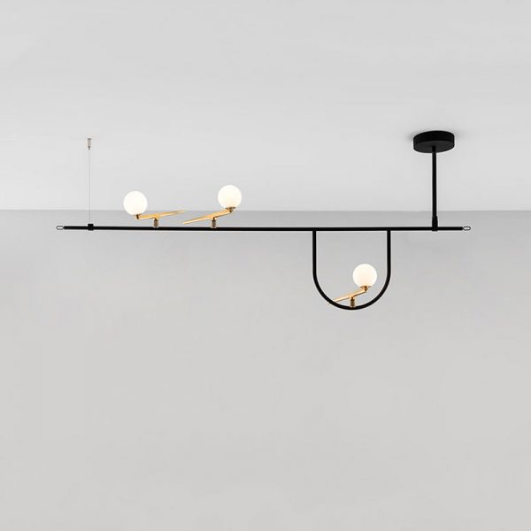 Artemide Yanzi SC1 lampada a sospensione, una leggera composizione di segni grafici, un equilibrio di strutture come rami su cui poggiano iconiche rondini dal corpo in ottone spazzolato, con il capo composto da una sfera in vetro bianco che racchiude la luce.