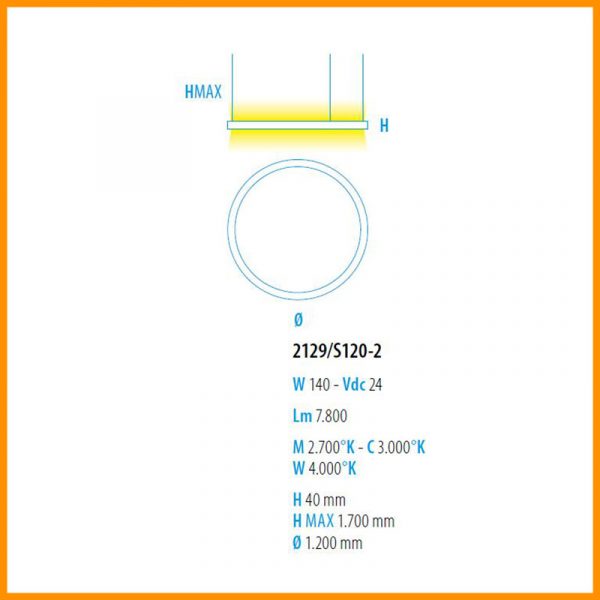 • Lampadina: 220-240V D. 50 cm LED 29W 1650lm 3000K + D. 90 cm LED 53W 2925lm 3000K + D. 120 cm LED 142W 7800lm 3000K - inclusi