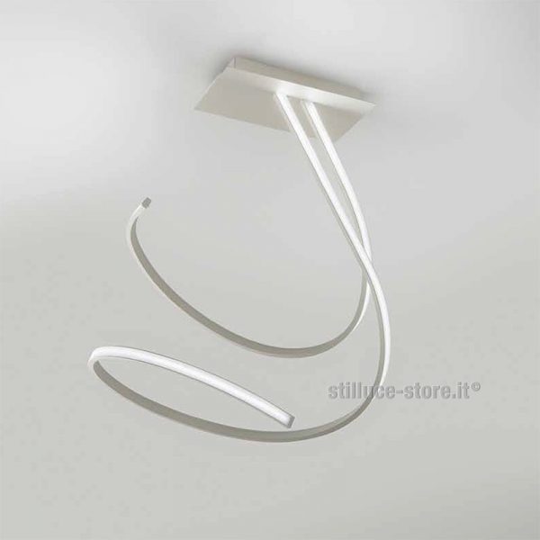 Braga Illuminazione Scia 2127/PL60 lampada da soffitto con Led integrato, Braga Illuminazione design. Struttura in metallo. La forma particolare richiama il movimento. Questa collezione è disponibile in diversi modelli tutti caratterizzati da linee morbide e tondeggianti. Colori: bianco, grigio, nero o foglia oro. LED 49W 5680lm. (luce calda) 3000K Vac 230V. Una sospensione dalla forma originale, ideale per illuminare ambienti moderni.