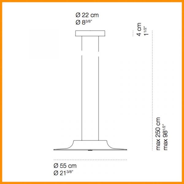 • Dimensioni: rosone diametro 22 cm. - diametro 55 cm. - altezza max 250 cm.