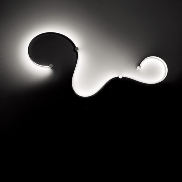 Cini e Nils FormaLa plus3 lampada da parete o soffitto; Luta Bettonica designer. Struttura in acciaio e tecnopolimeri con nastro acciaio satinato/nero, coperchi cromo satinato. Eventuali accessori (a richiesta) da acquistare separatamente: sostegno per soffitto e kit per cartongesso. Lampada LED a luce indiretta e diffusa, flessibile, un nastro di luce in acciaio armonico da modellare come più ci piace e posizionabile in infinite configurazioni. Disponibile in diverse lunghezze, le più corte utilizzabili come semplici lampade da parete, mentre nella misure più lunghe per creare effetti particolari luminosi sulla parete. Adatta sia per l’ambiente domestico che per il commerciale. Codice prodotto: Acciaio satinato/nero 1617 + aliment. 1623.
