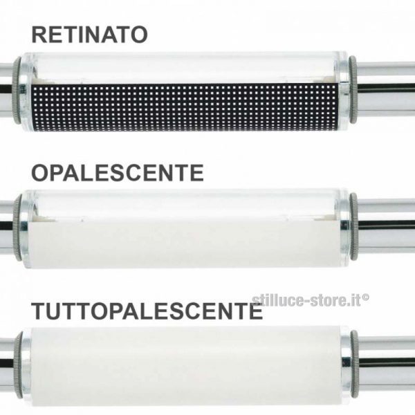 Cini e Nils Gradi Mini LED lampada da parete, Franco Bettonica e Mario Melocchi Designer, 1990-2015. Struttura in acciaio cromato o nichel satinato; diffusore in borosilicato e smaltato che funge da riflettore e schermo antiabbagliante. Diffusore disponibile in tre modelli: in vetro retinato, opalescente o tuttopalescente. LED 2 X 6W 2 X 750lm. 2800K CRI>80 incluso. Una nuova versione per una grande invenzione per avere un’alta efficienza luminosa ad un basso consumo energetico.