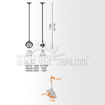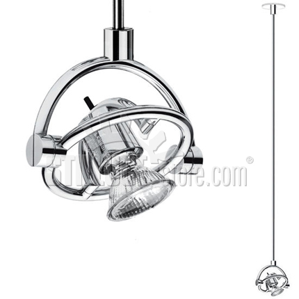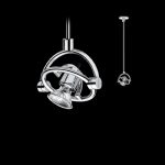 Cini e Nils MiniFariuno 100, lampada da soffitto, design di Franco Bettonica e Mario Melocchi, 1998. Struttura in zama. Apparecchio caratterizzato da un faretto orientabile in tutte le direzioni. Inclusa una lampadina LED dimmerabile dalla potenza pari ad una lampadina alogena di ca. 40W. Disponibile anche in modelli con asta di misura inferiore: 25 cm o 50 cm. Codice prodotto: Cromo cod. 966L – Argento cod. 967L