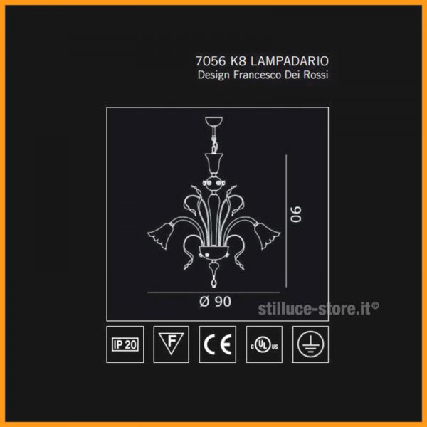 De Majo Illuminazione Lampadario Classico a 8 luci in cristallo soffiato secondo l’antica tradizione dei Maestri vetrai di Murano. Disponibile in due modelli: montatura verniciata argento con vetro in cristallo decoro rubino oro, montatura verniciata argento con vetro cristallo decoro verde oro. Predisposto per n. 8 lampadine sfera/oliva E14 alogena eco max 42W o nuove lampadine a LED – (escluse). Codice prodotto: 7056 k8