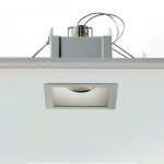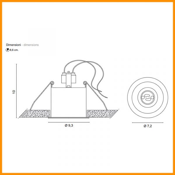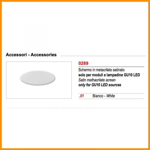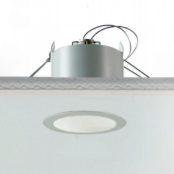 Egoluce Easy Tondo faretto da incasso “minitrim” 230V – Classe II doppio isolamento – IP20 – CE – Foro incasso d. 8,6 cm. – esterno faretto 9,3 cm. Corpo in metallo verniciato bianco opaco, cornice di ridottissime dimensioni. Provvisto di portalampade con attacco GU10 per lampadina alogena eco o LED (esclusa), funziona senza alimentatore collegandosi direttamente alla tensione di rete. Fissaggio del corpo in soffitti di cartongesso mediante un sistema di molle a filo, la piccola cornice tonda consente un’installazione senza operazioni di stuccatura, rasatura e verniciatura. Accessori: schermo in metacrilato satinato per luce diffusa cod. 0289 è utilizzabile solo con lampadine LED. Codice prodotto: 6442.01