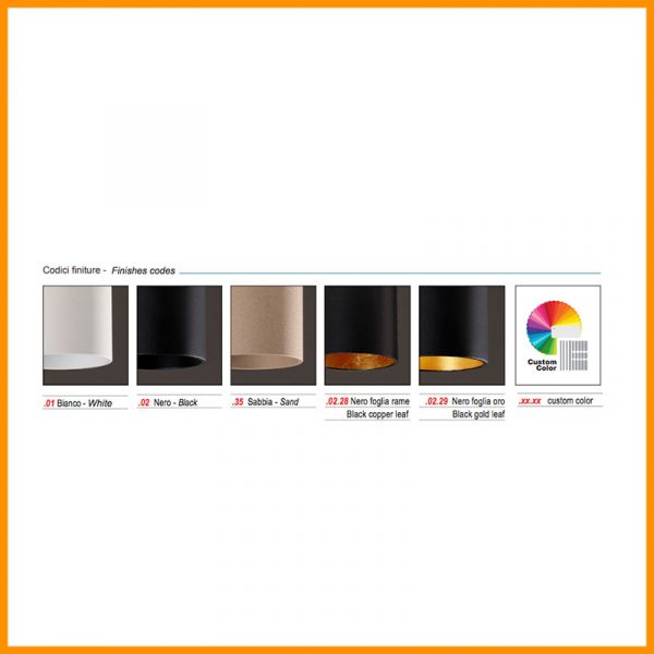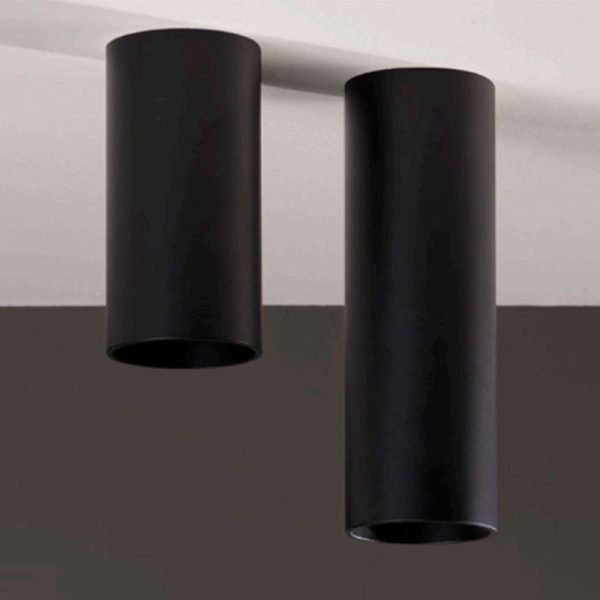 Egoluce Egotube lampada a soffitto h. 21 cm. con diverse finiture di colore: bianco, nero, sabbia, nero foglia rame, nero foglia oro, cromato con interno bianco. Lampadina LED GU10 sostituibile (da acquistare separatamente).