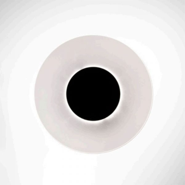 Egoluce Elleout lampada a parete con disco in metacrilato satinato e particolare centrale nei colori bianco, nero o sabbia. Lampadina LED GX53 sostituibile (esclusa).