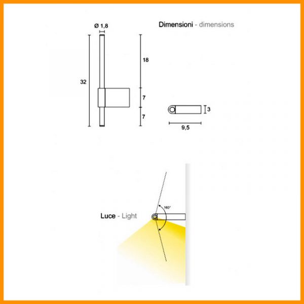 Egoluce Lancia lampada da parete LED cm. 32 con luce diretta e diffusa, orientabile 160°. Struttura in alluminio verniciato colore bianco, nero o dorato satinato completa di diffusore in metacrilato opale. LED 5,4W disponibile a 2700K (luce più calda), 3000K (luce calda) o 4000K (luce diurna) CRI>90 e alimentatore inclusi. Adatta in qualsiasi tipo di ambiente, sia moderno che classico, ottima resa cromatica per illuminazione di quadri con alto confort visivo.