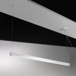 Egoluce Lancia System lampada LED a sospensione in alluminio verniciato nel colore bianco o nero. A richiesta misure personalizzate da 100 a 300 cm. Lineare e pulita arreda e illumina ambienti sia domestici che lavorativi. Disponibile a 2700K (luce più calda), 3000K (luce calda) o 4000K (luce diurna). Completa di rosone e alimentatore.