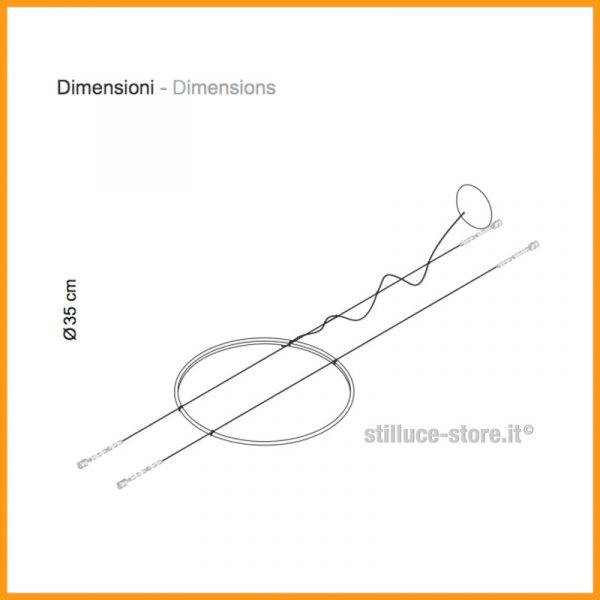 Egoluce Lancia Tonda cavo lampada a LED d. 35 cm. Sistema di luce diffusa su cavi di acciaio, corpo diametro 35 cm. posizionato in appoggio su una coppia di cavi d’acciaio tesi tra due tiranti contrapposti. Il prezzo è riferito ad un corpo lampada d. 35 cm. completo di cavo coassiale 5,5 mt, rosone e alimentatore inclusi, n. 4 tenditori con 2 cavi di acciaio mt. 6.