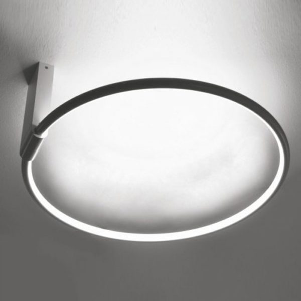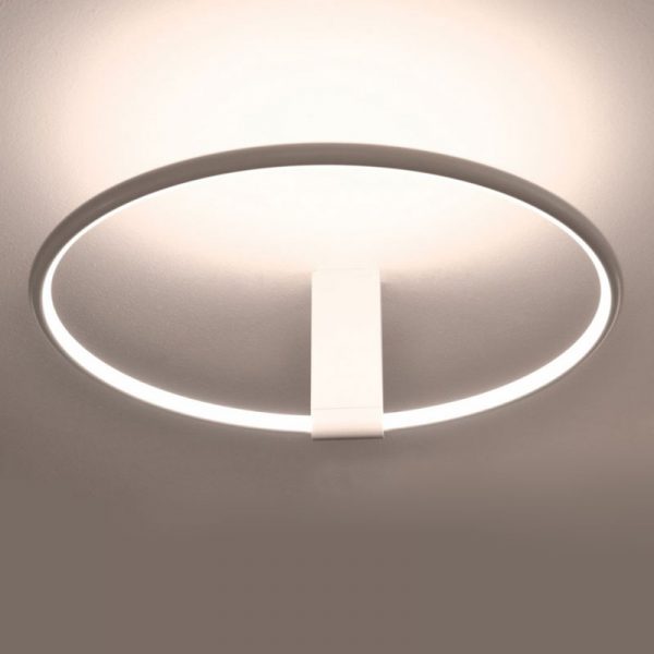 Egoluce Lancia Tonda soffitto d.35 cm, un anello luminoso con profilo nel colore bianco, nero, dorato satinato o cromato, luce LED diffusa. Sorgente LED e alimentatore inclusi.