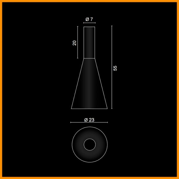 • Dimensioni: base soffitto d. 7 cm. - altezza 55 cm. - diametro 23 cm.