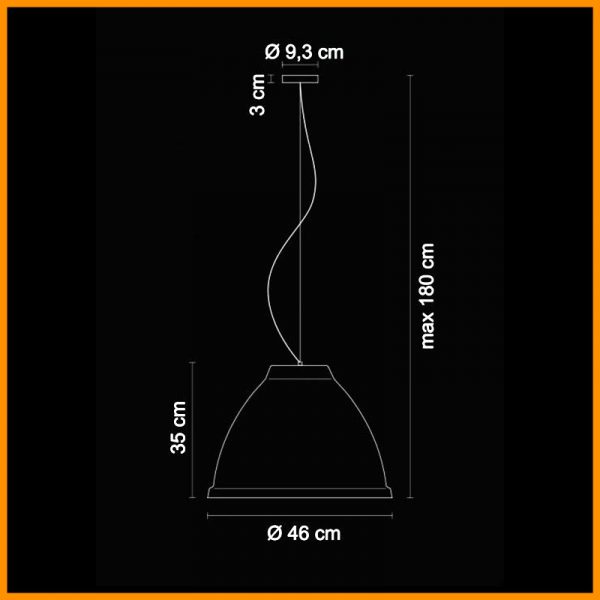• Dimensioni: D. 46 cm - H. 35 cm - H. max. 180 cm - Rosone d. 9,3 cm h. 3 cm