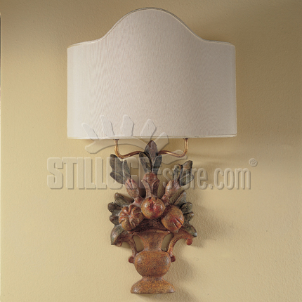Lampada a parete 2 luci in legno intagliato e pitturato a mano.