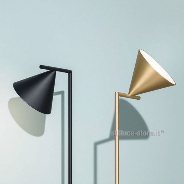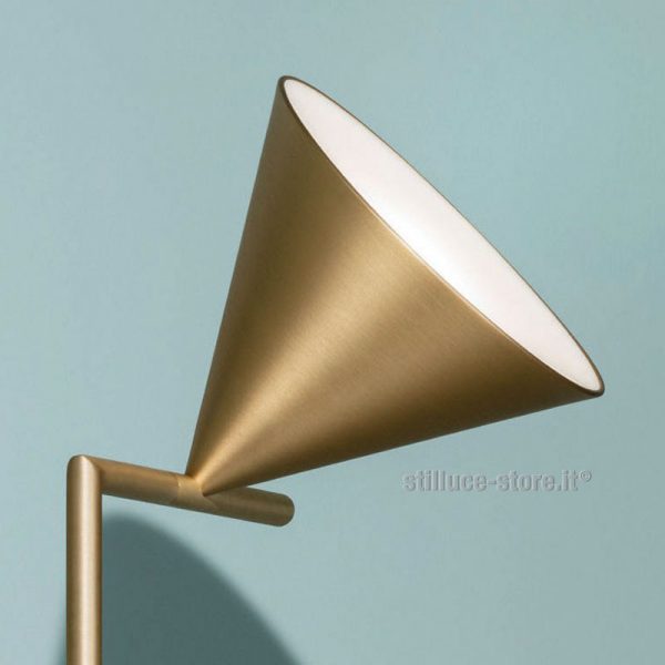 Flos Captain Flint lampada a LED nel colore antracite o ottone spazzolato con diffusore conico in metallo orientabile.