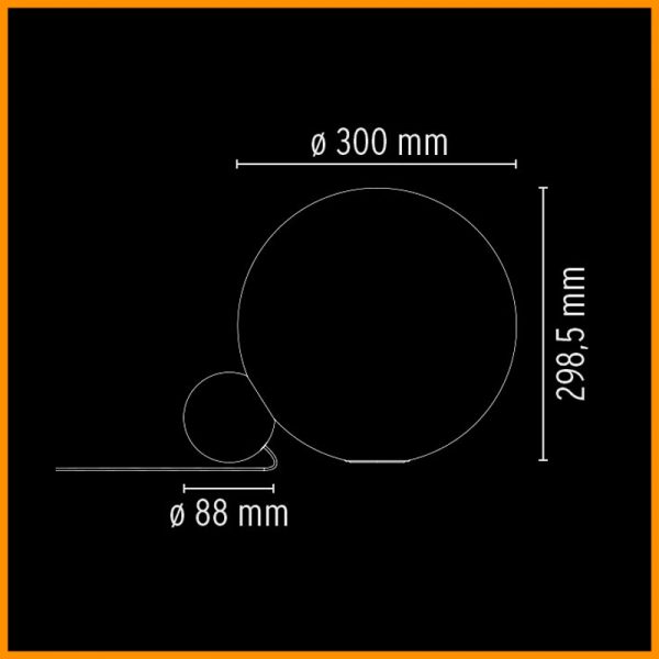 • Dimensioni: Sfera diffusore 30 cm - sfera alluminio 9,8 cm